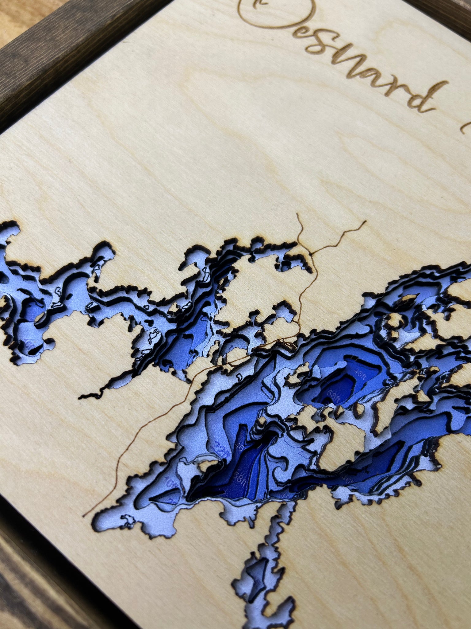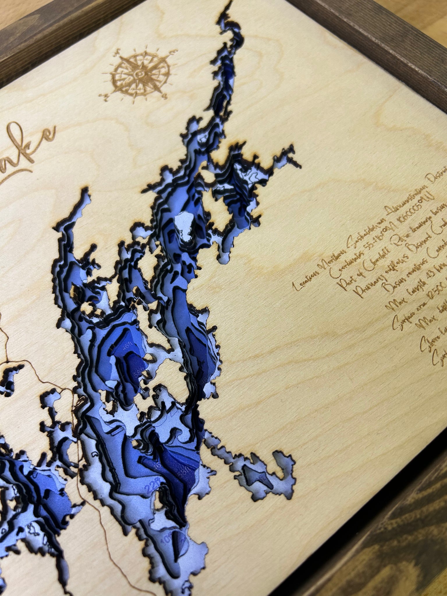 This handcrafted layered map features 8 precisely laser-cut layers in vibrant colours, capturing the depth and beauty of Besnard Lake . Each piece is hand-assembled and set in a high-quality wooden frame with a solid back panel, ready to hang on your wall.
