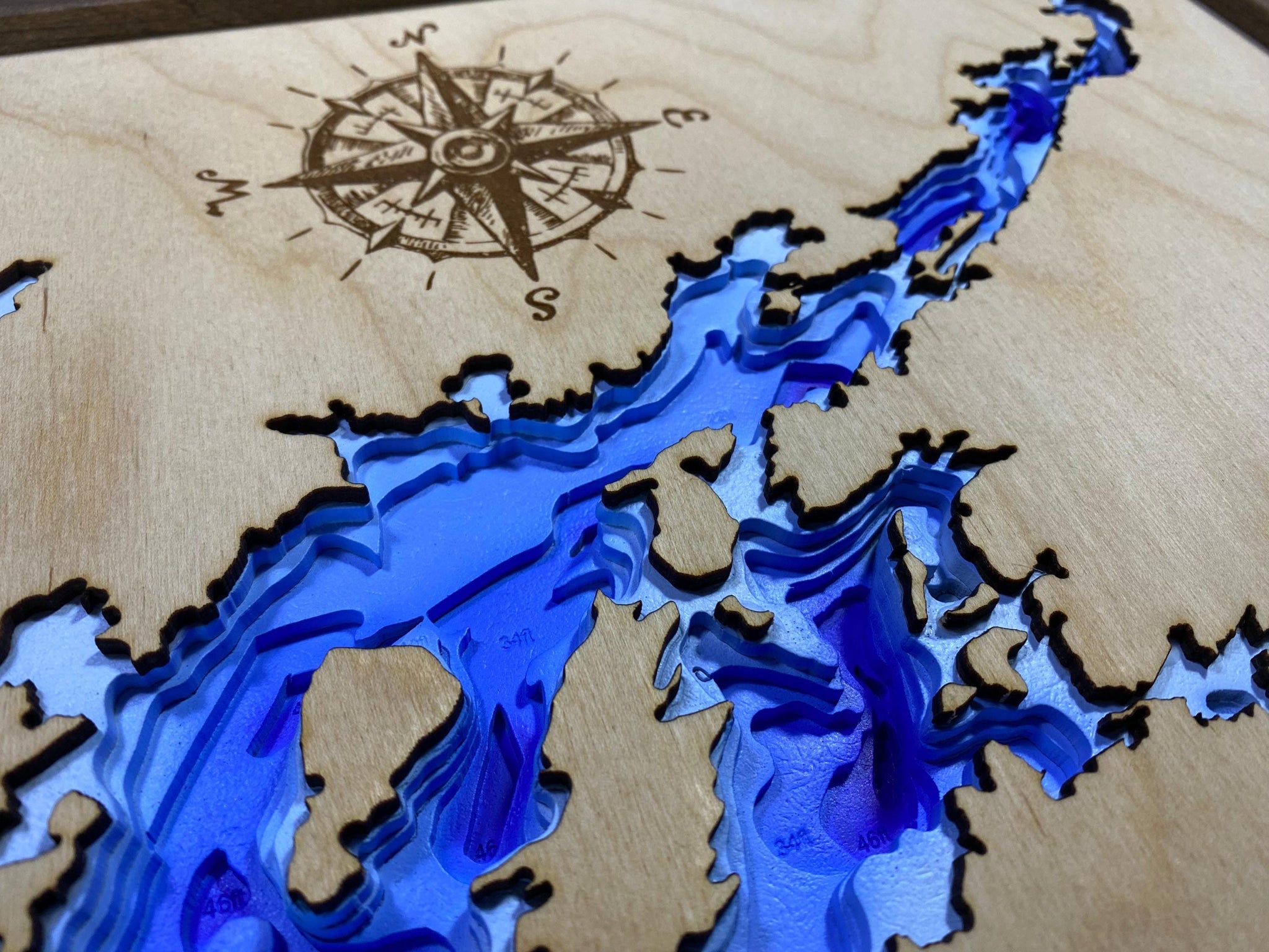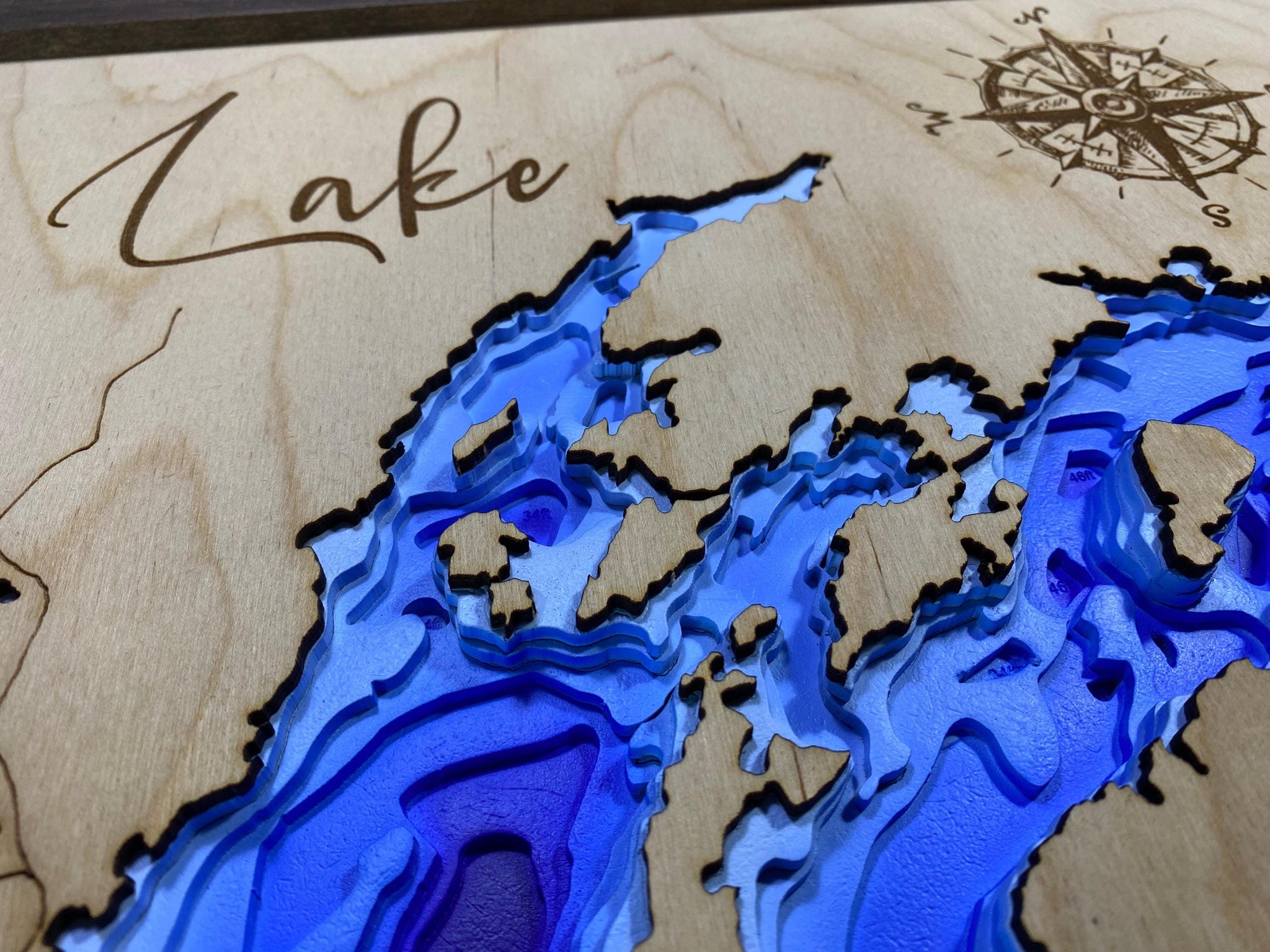 * Intricate Detail: Each laser-cut wooden layer represents the lake's true depth contours, resulting in an accurate and visually captivating design.