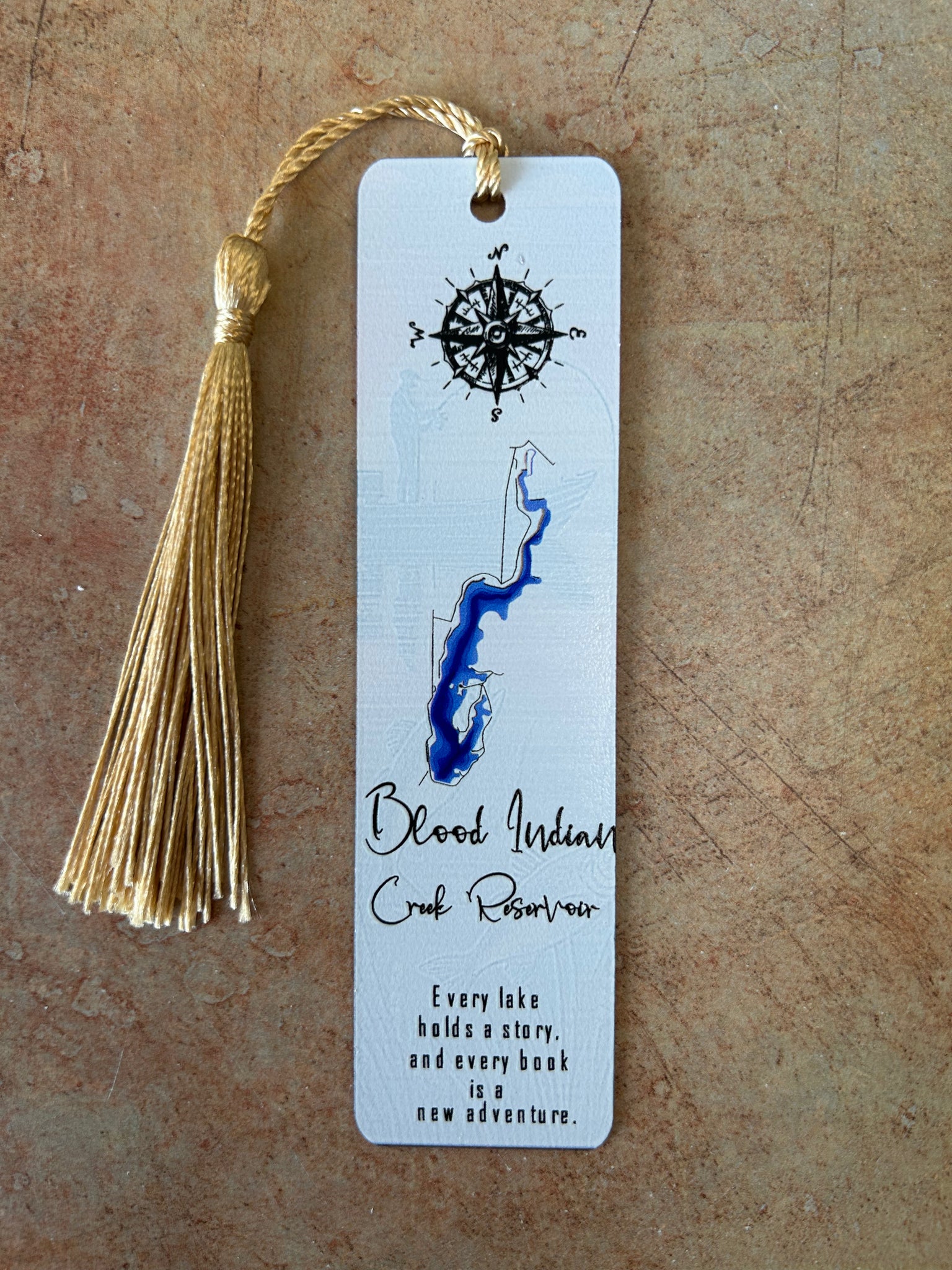 Double-Sided Acrylic Bookmark - Blood Indian Creek Reservoir & Fishing Scene