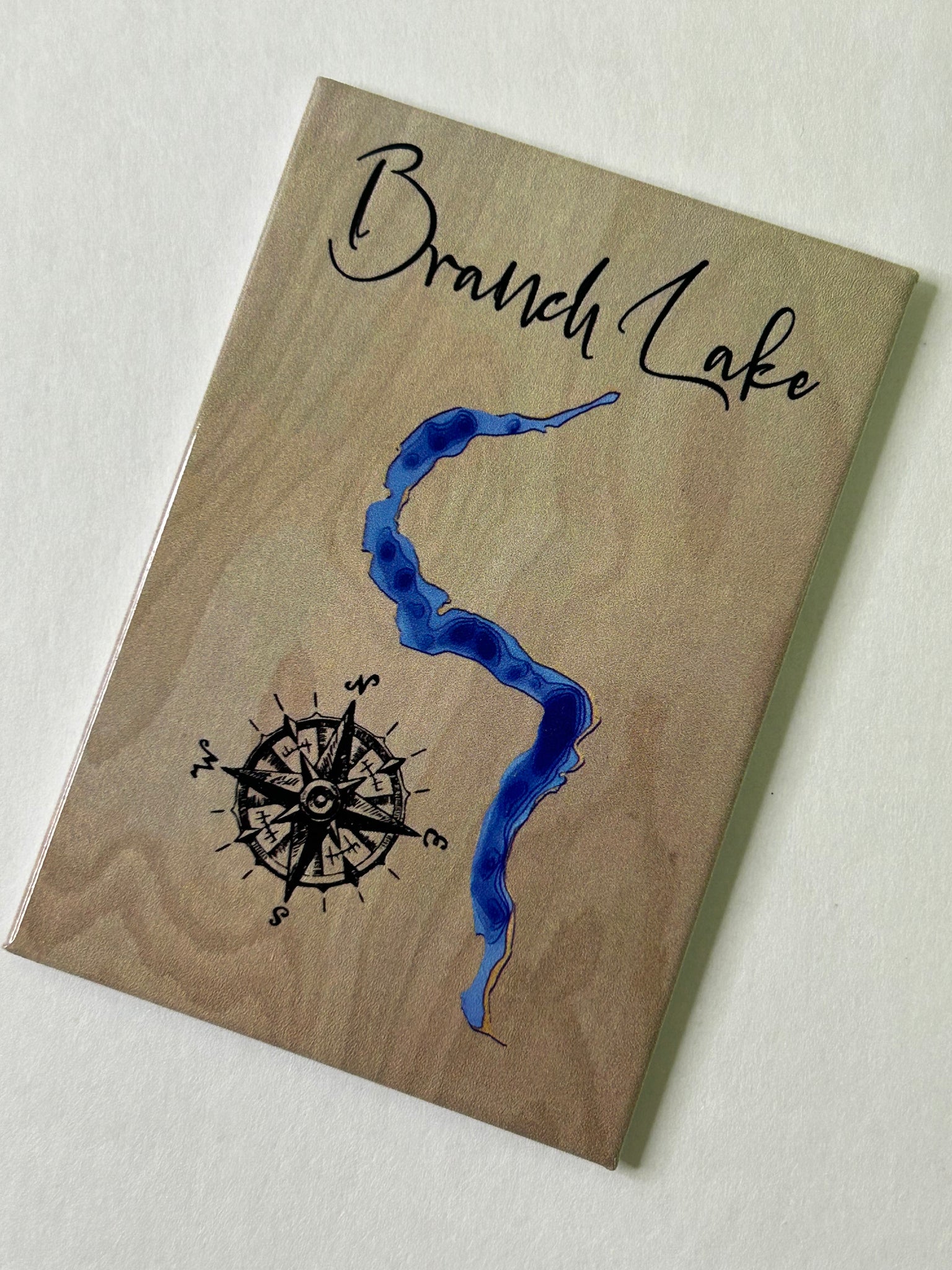 Bring the beauty of Branch Lake, to your space with this stunning 2x4-inch magnet. Featuring an accurate bathymetric depth map, this design showcases a layered blue engraving that highlights the lake’s underwater contours.
