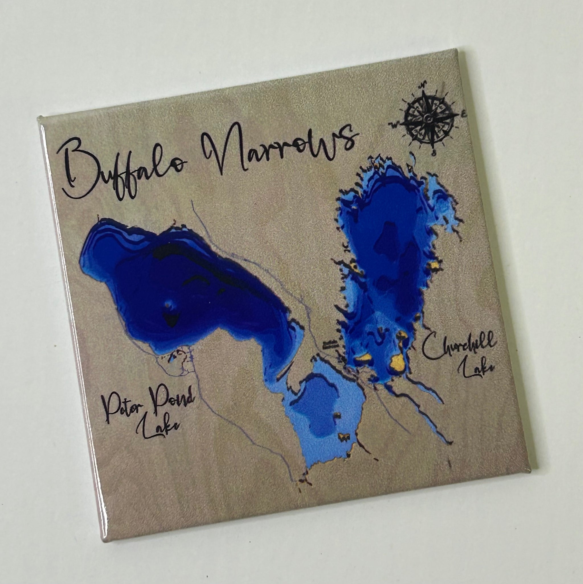 Buffalo Narrows 2x4” Fridge Magnet – Alberta /Saskatchewan Lake Depth Map