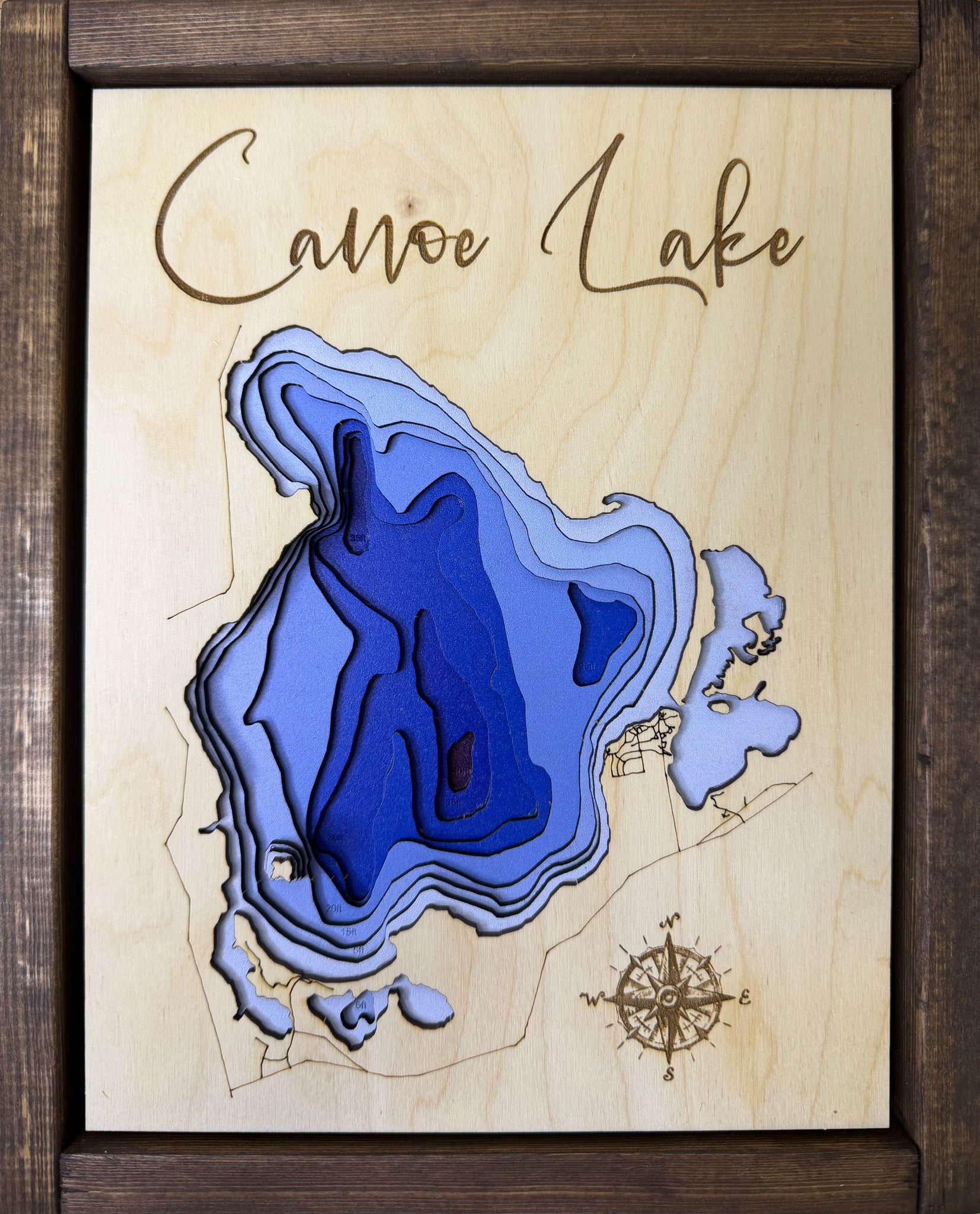This handcrafted layered map features 8 precisely laser-cut layers in vibrant colours, capturing the depth and beauty of Canoe Lake . Each piece is hand-assembled and set in a high-quality wooden frame with a solid back panel, ready to hang on your wall.