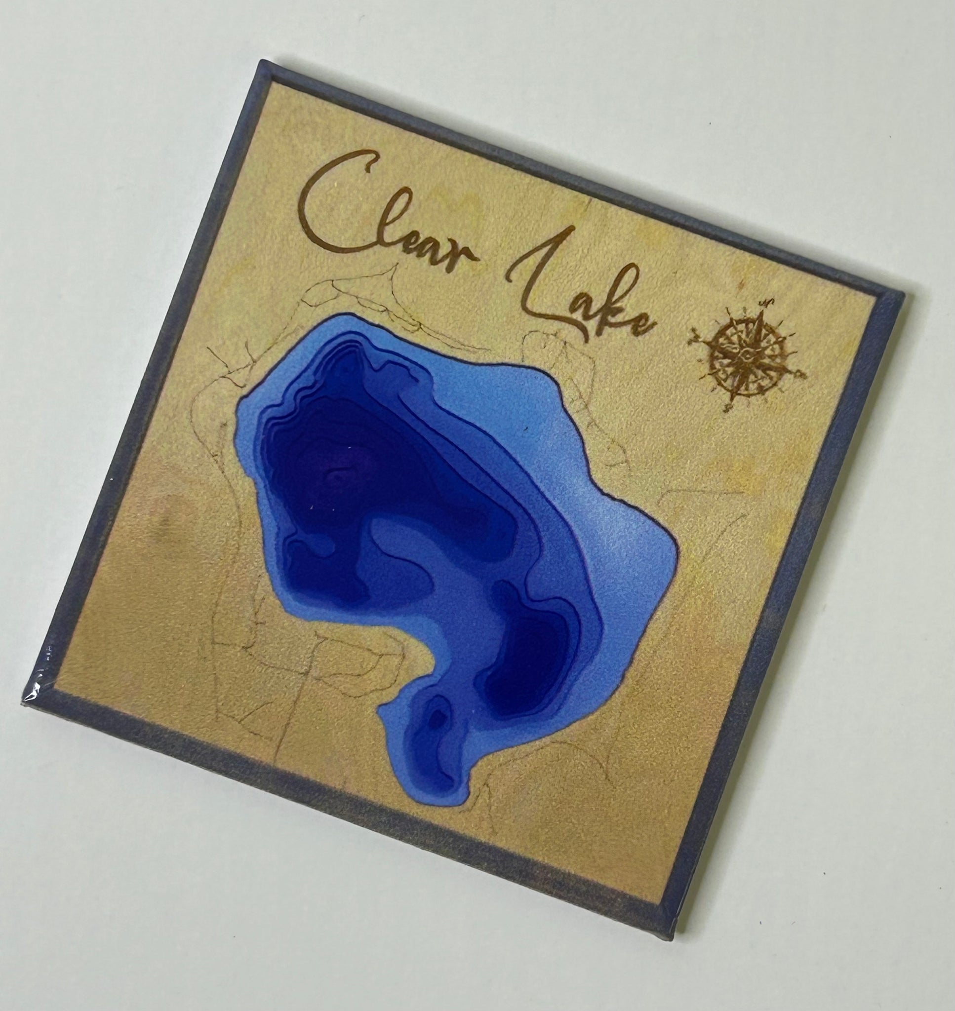 Bring the beauty of Clear Lake, to your space with this stunning 2x4-inch magnet. Featuring an accurate bathymetric depth map, this design showcases a layered blue engraving that highlights the lake’s underwater contours.