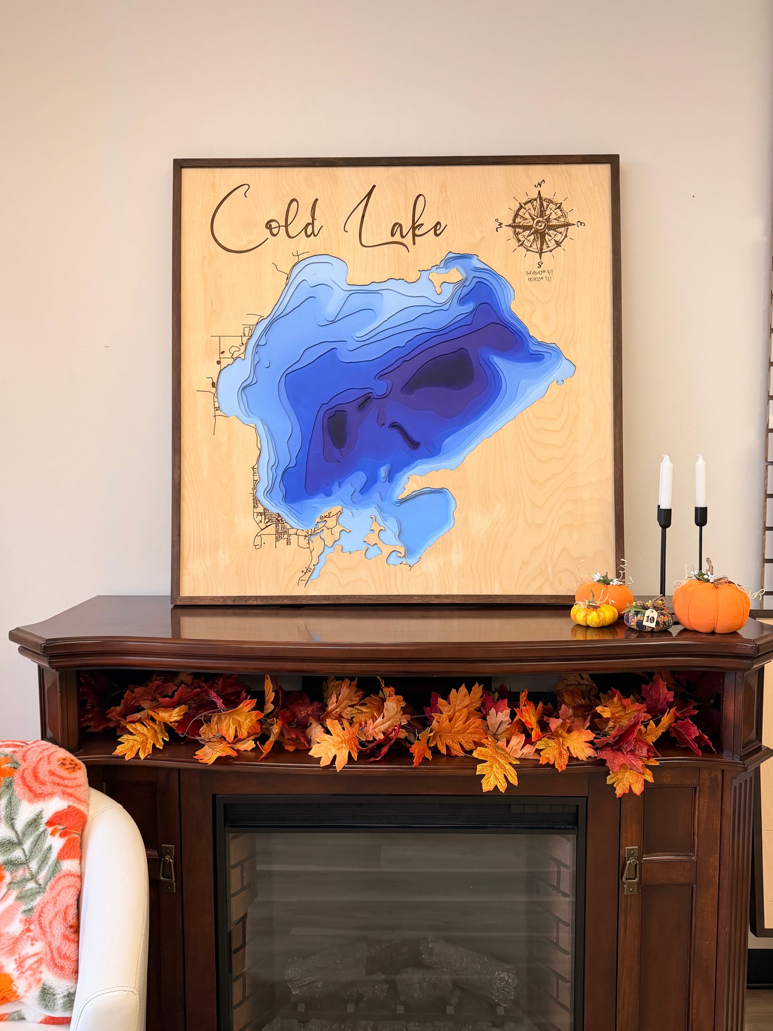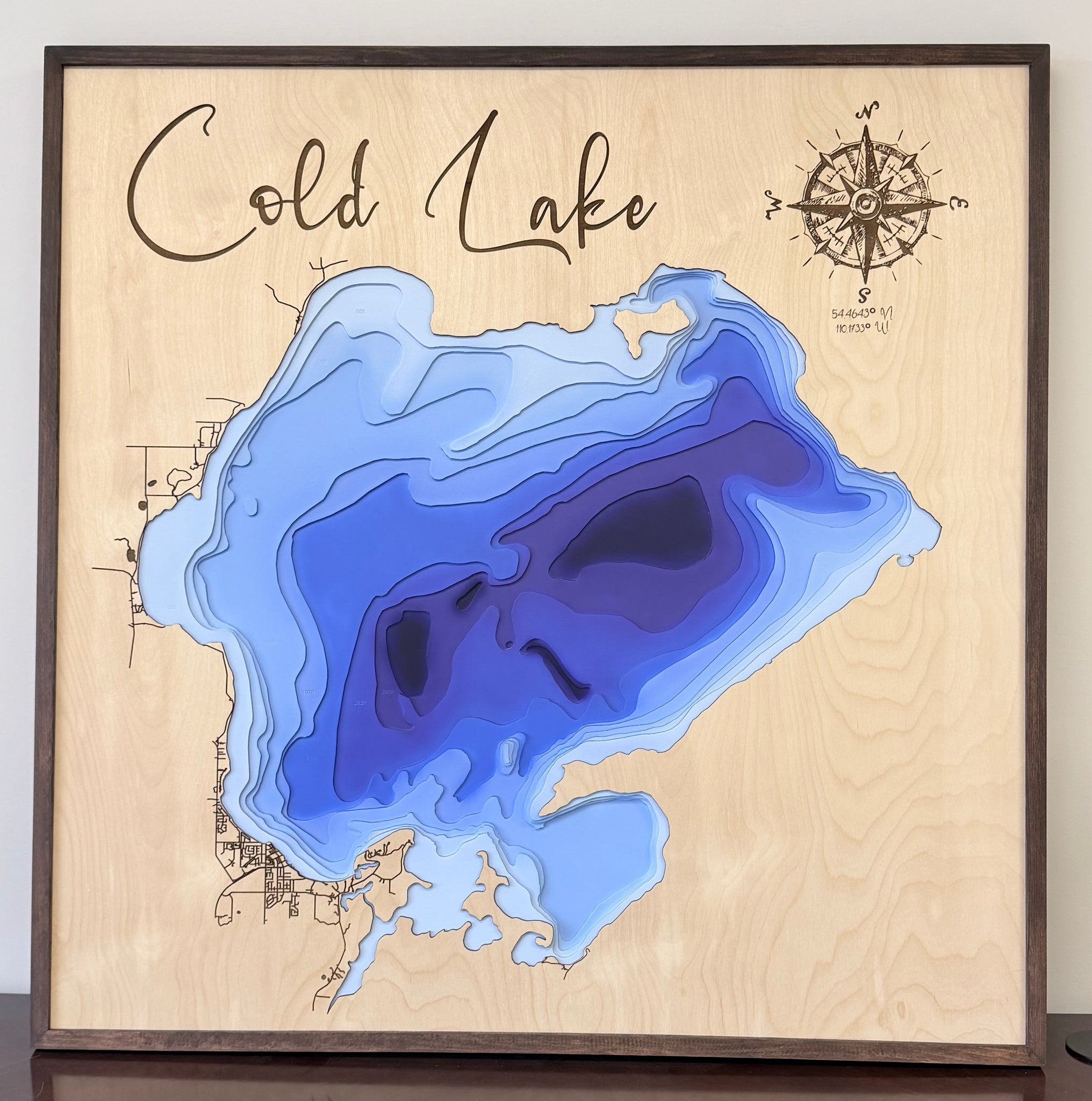 Brown frame , 40x40” , 10 layers . Layered art . First map with this size, 10 layers , painted by airbrush with wooden frame and back panel for hanging to the wall. Made in Canada , Lloydminster , Saskatchewan