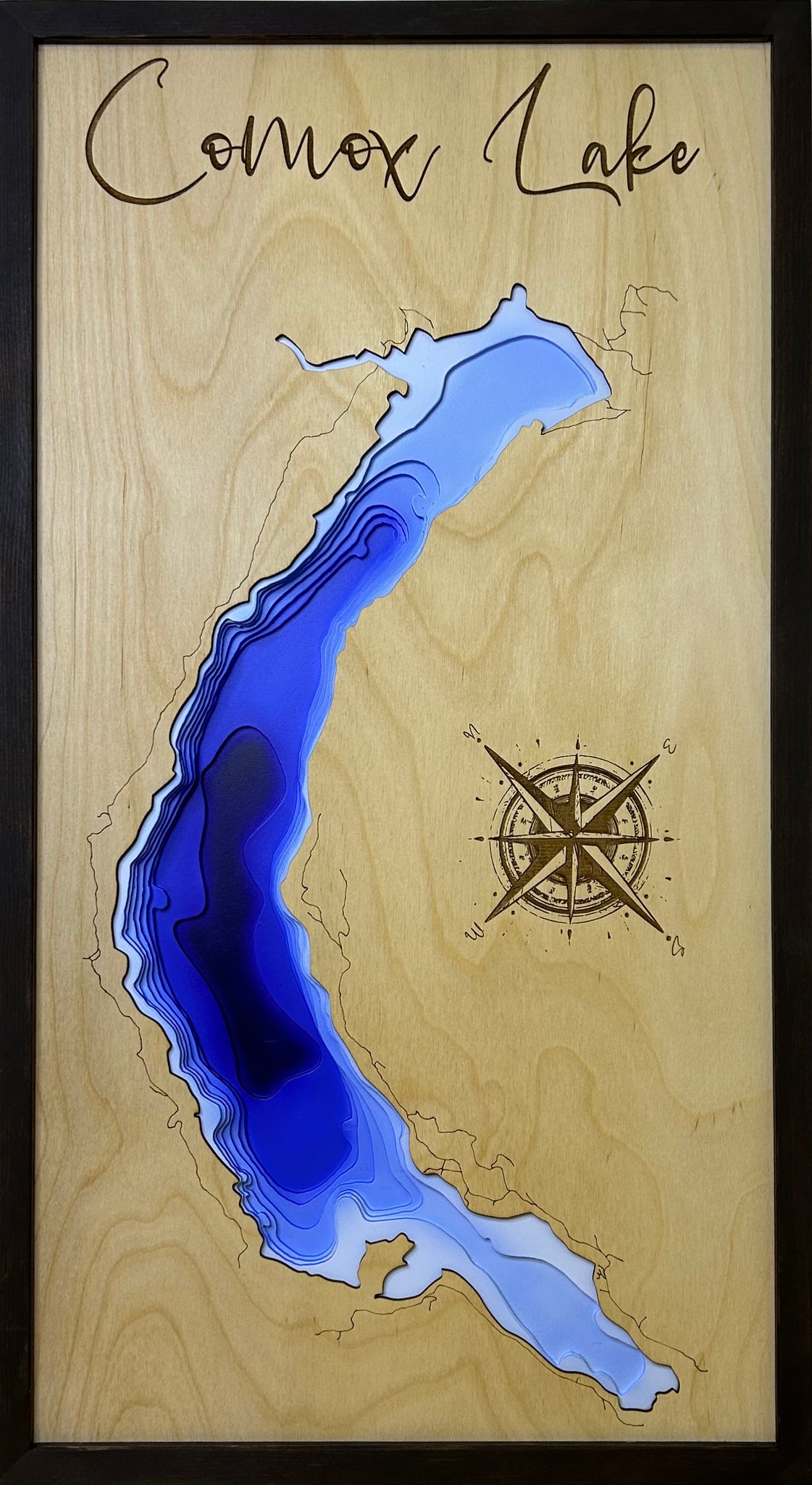 Comox Lake — Premium Layered Wood Map (16×28.5”) — Large Edition