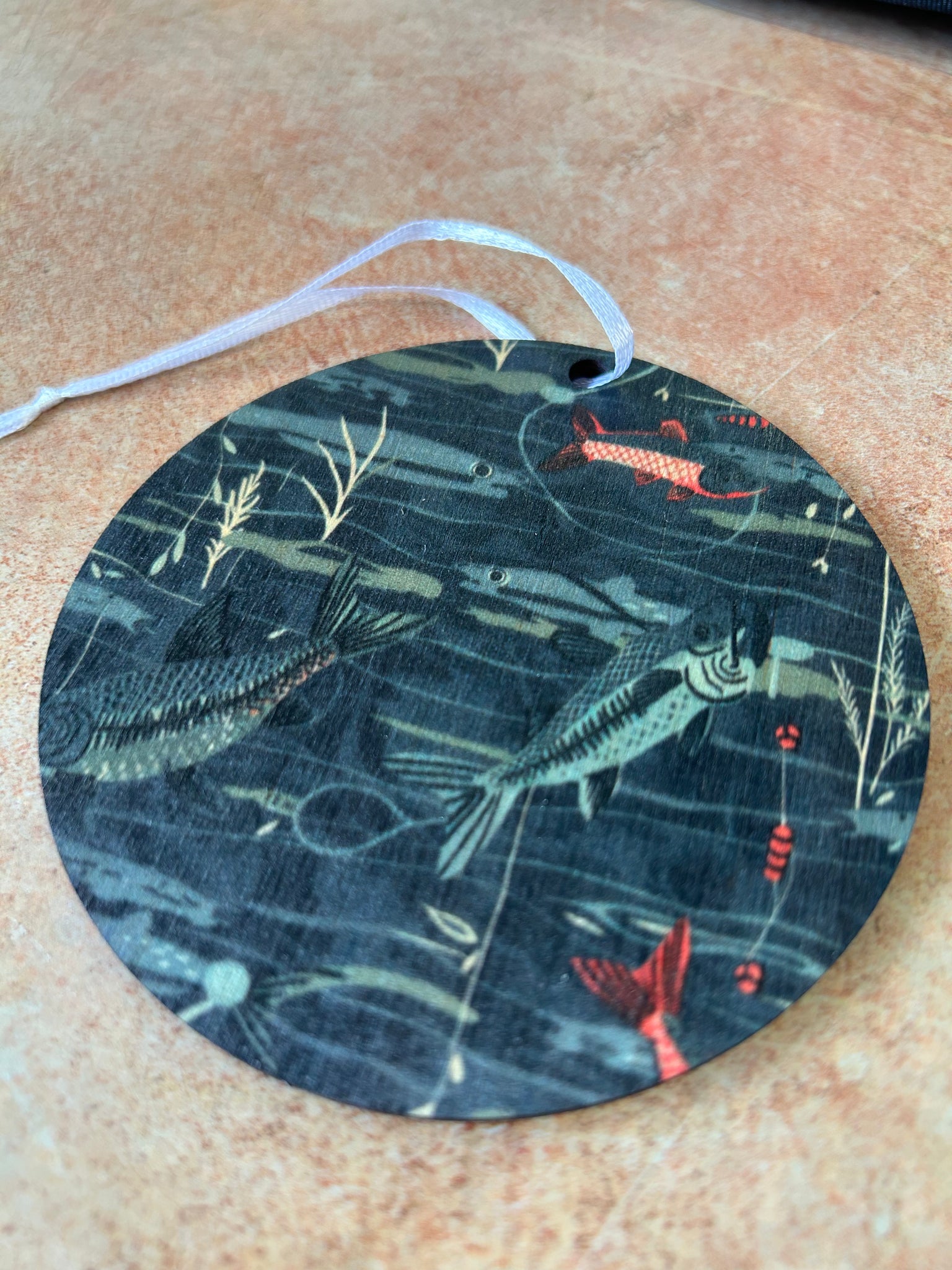Celebrate your favorite lake with our 4-inch round wood ornament, printed on both sides for a unique, high-quality finish. One side features a detailed, accurate map of the lake, capturing its distinctive shape and character. The other side showcases a vibrant fishing-themed design, perfect for enthusiasts of the outdoors. This ornament is crafted with care and printed for a smooth, durable finish, making it an eye-catching addition to your decor. Ideal for gifting or keeping as a personal memento, it brings the spirit of the lake and the joy of fishing into your home.