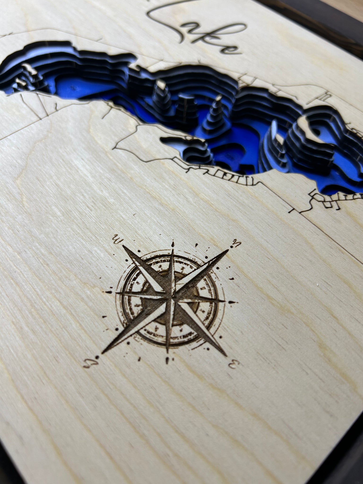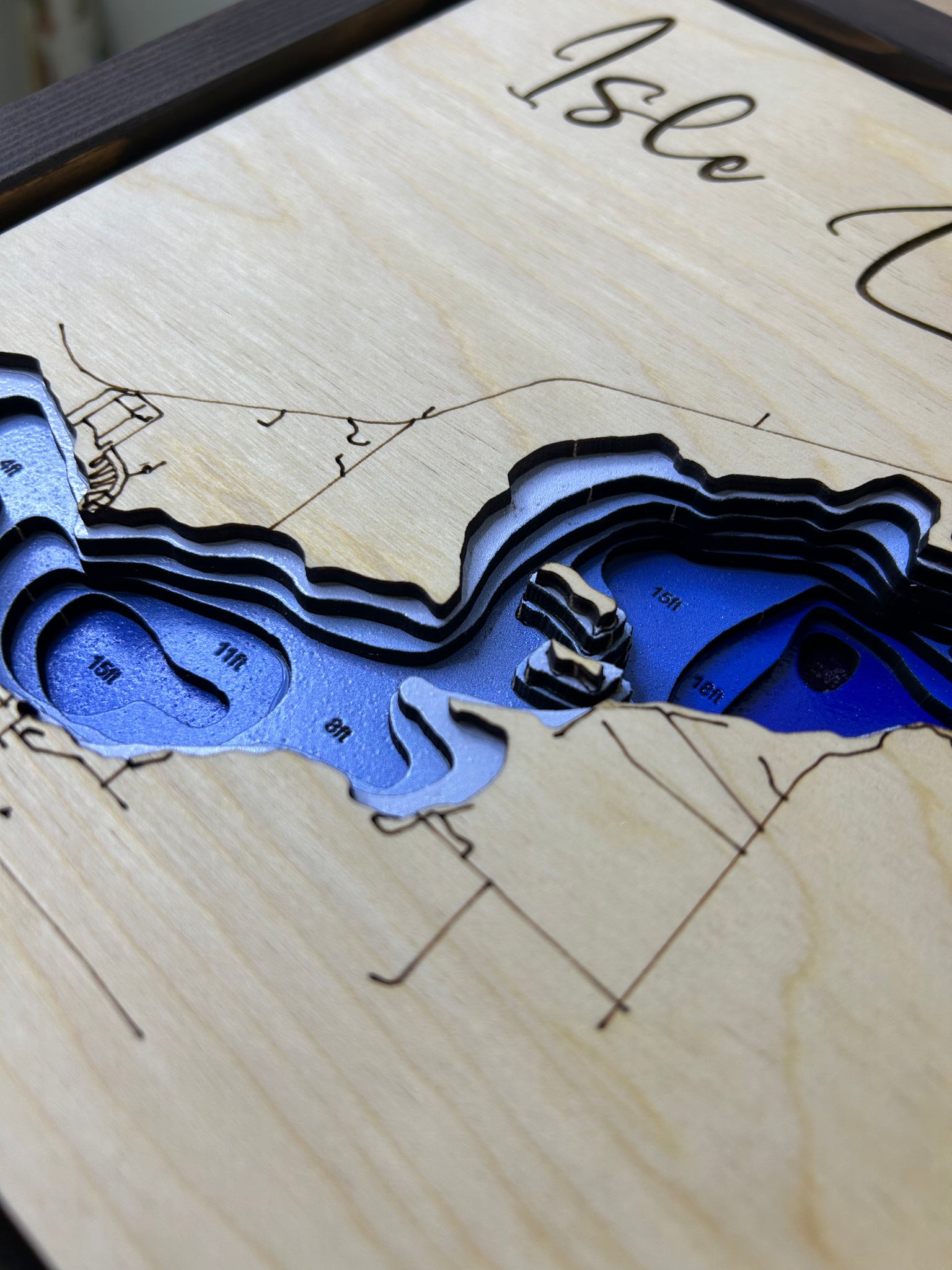 This handcrafted layered map features 8 precisely laser-cut layers in vibrant colours, capturing the depth and beauty of Isle Lake. Each piece is hand-assembled and set in a high-quality wooden frame with a solid back panel, ready to hang on your wall.