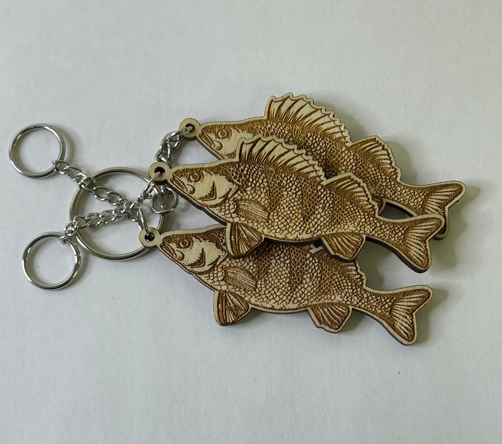 A wooden keychain featuring the exact shape of Yellow Perch. Compact, sturdy, and perfect for keys, backpacks, or as a meaningful gift for lake lovers, fishermen, and cottage owners.