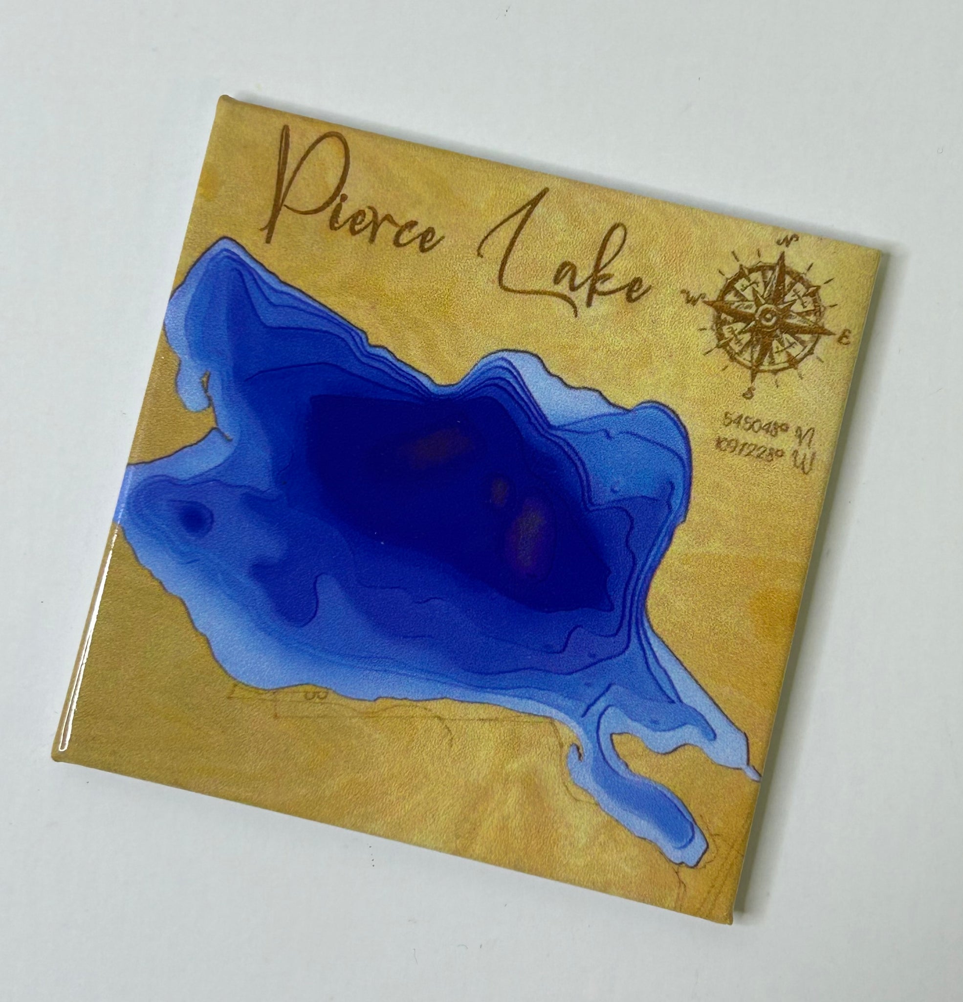 Bring the beauty of Pierce Lake, to your space with this stunning 2x4-inch magnet. Featuring an accurate bathymetric depth map, this design showcases a layered blue engraving that highlights the lake’s underwater contours.