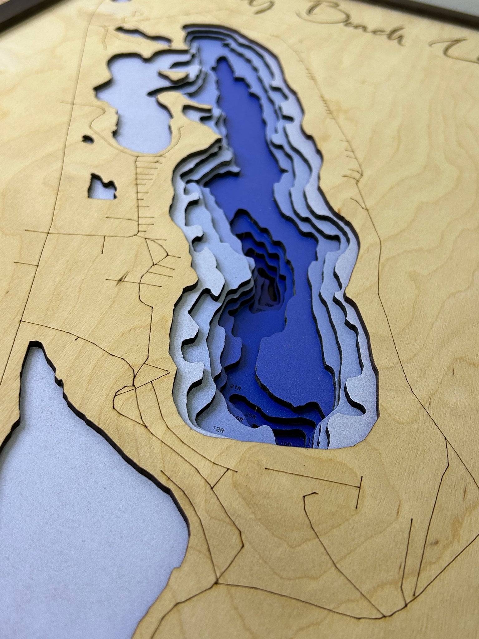 Dark brown frame , 16x28β . 8 layers . Layered art . Cnc cutouts glued to lake surface, painted by airbrush with wooden frame and back panel for hanging to the wall. Made in Canada , Lloydminster,Sk