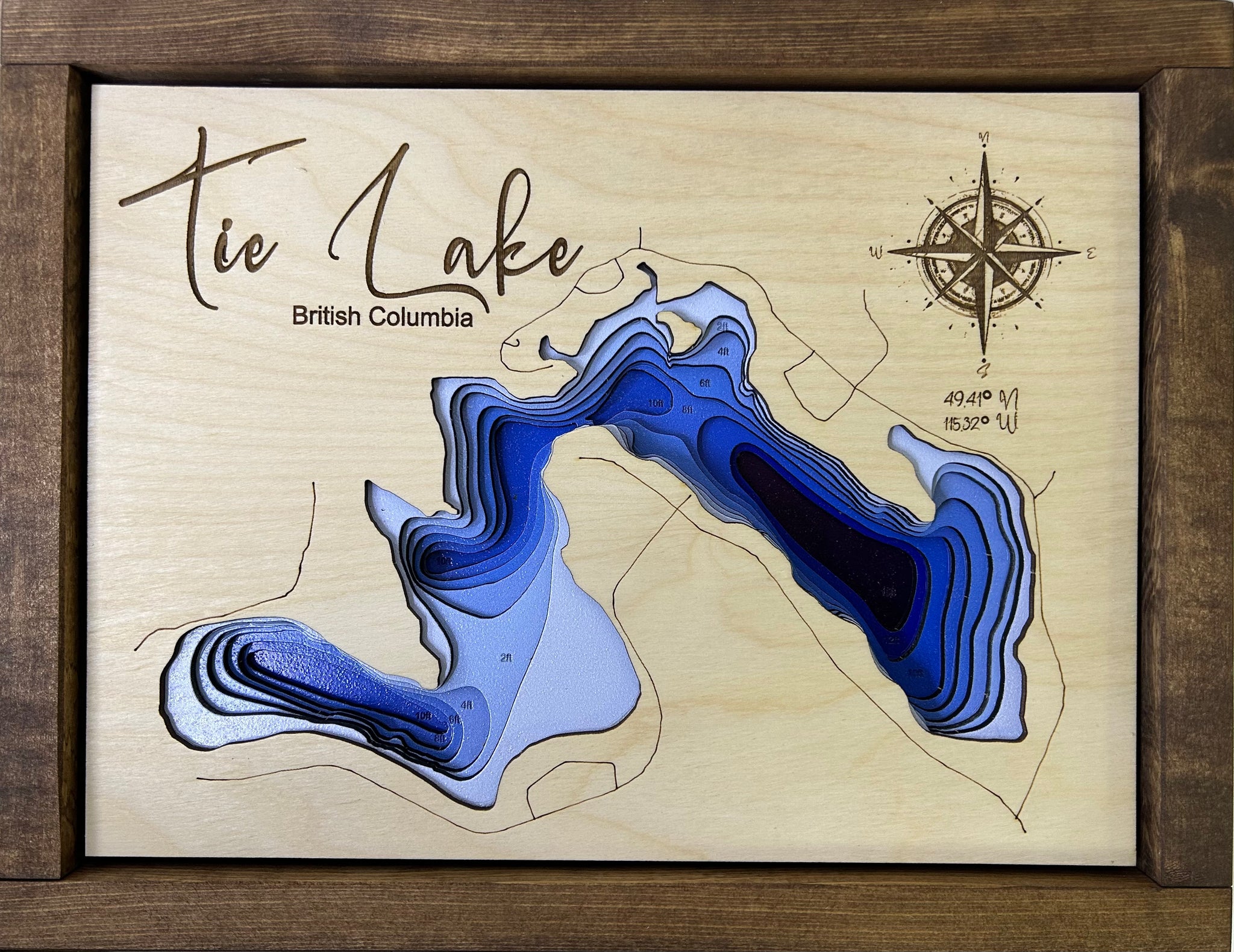 This handcrafted layered map features 8 precisely laser-cut layers in vibrant colours, capturing the depth and beauty of Sproat Lake. Each piece is hand-assembled and set in a high-quality wooden frame with a solid back panel, ready to hang on your wall.